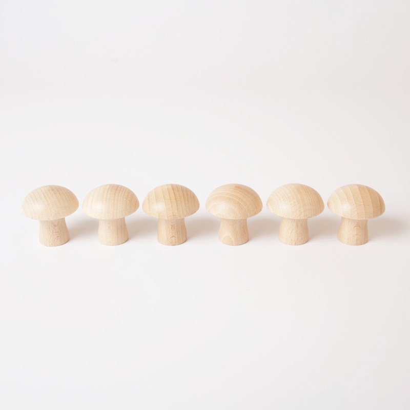 Grapat's 6 natural wooden mushrooms are a perfect addition to your open ended toy collection. Create magical play scenes, use for story telling or gnome stools.Materials: Wood from sustainable forests, finished with natural waxHeight 4.4cmAge: 10 Months +M