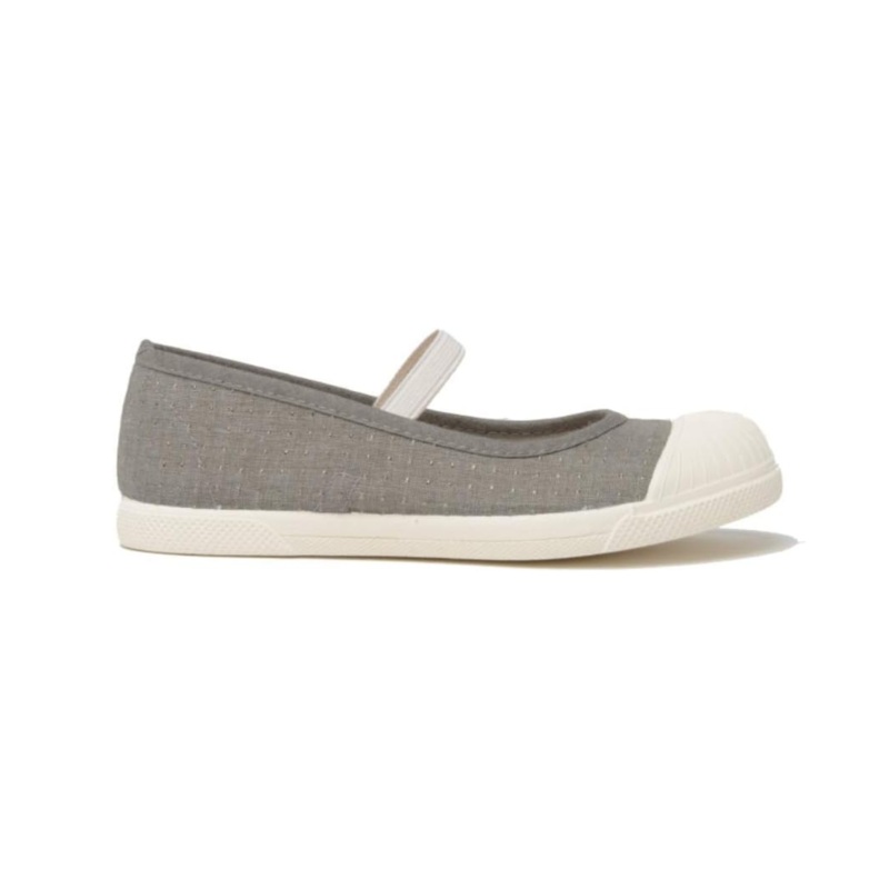 Runs small, order one size up. Elastic strap. Non-slip rubber soles. Cushion padded insole. Made in Spain. Machine washable. Rubber captoe.