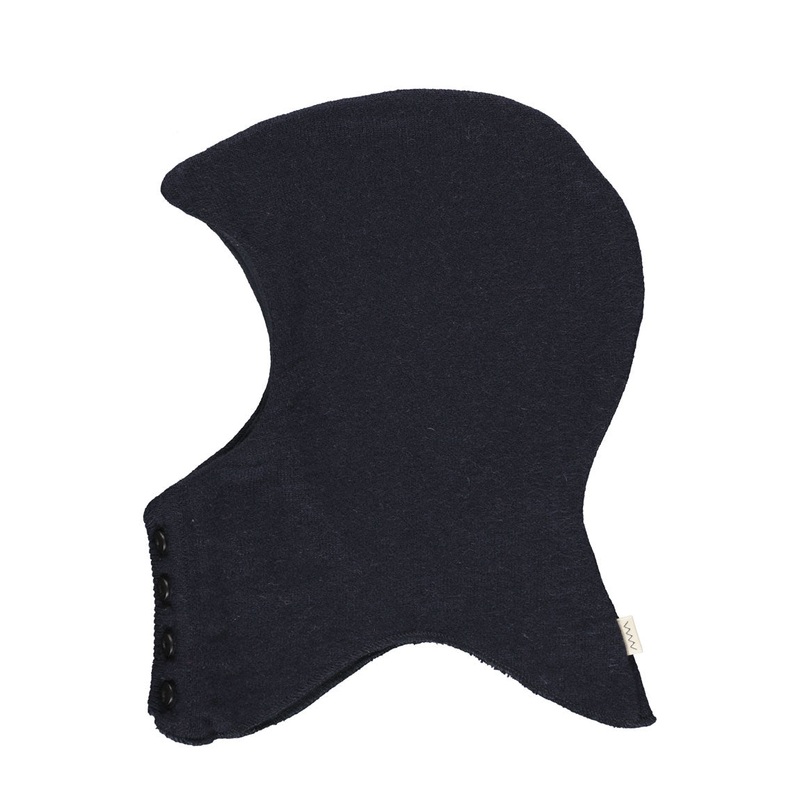 Balaclava with soft lining and button closure.