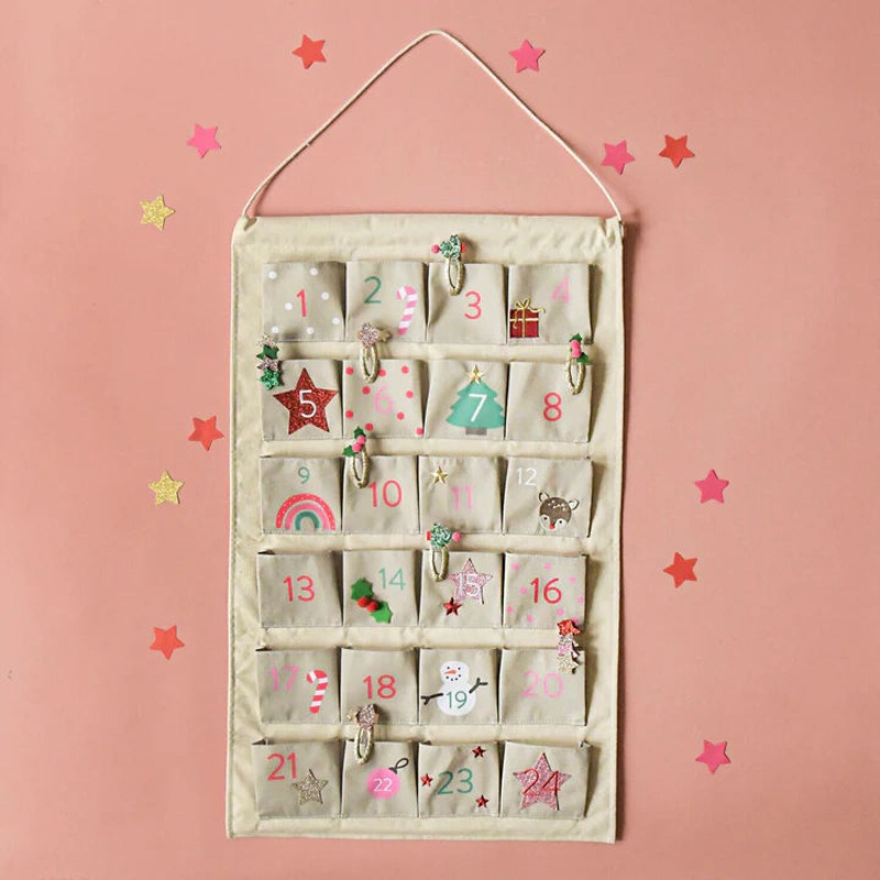 Our Rockahula Jolly Christmas Reusable Advent Calendarhas 24 roomy pockets just waiting to be filled with treats such as hair clips, ponies and more!Made from sturdy woven fabric, it rolls up to a practical size for storing away until the next year. Each p