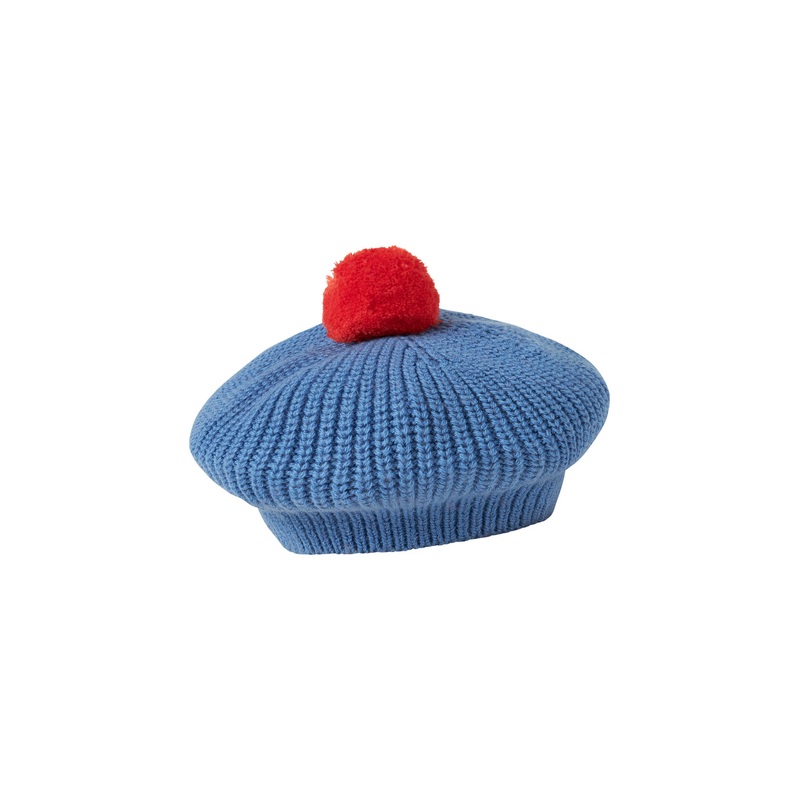 Knitted hat with a soft pompom on top. The hat has a round, slightly wavy shape and fits well on the head. Standard 100 by OEKO-TEX certified (OEKO-TEX STANDARD 100 license no. 14.HRT.466739)
