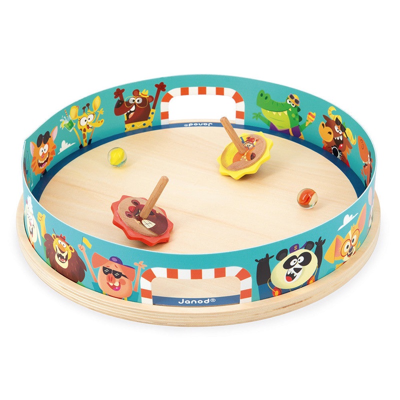 The crowd goes wild as the spinning tops enter the arena! Children aged 4 years and up strive to become master of the arena. This set includes an arena, spinning tops with launchers, and marbles. Each spinning top features silicone for optimal bounce and p