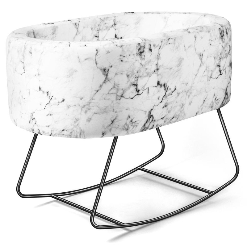 The upholstered bassinet is encased in poplar-curved plywood and provides the ideal blend of support and comfort to babies. Aristot bassinets are sourced from materials that have passed the strictest standards in safety. Carrara Marble sets the tone for a home that appreciates art, design and the joy of family. Inspired by old-world sculptures, this luxurious white marble has become one of the most sought-after stones in the world. For newborns until they begin to push up on hands and knees, roll over, or reach 18lbs, whichever comes first. Compliant with the REACH, the EU regulation that protects human health and the environment from the risks that can be posed by harmful chemicals.