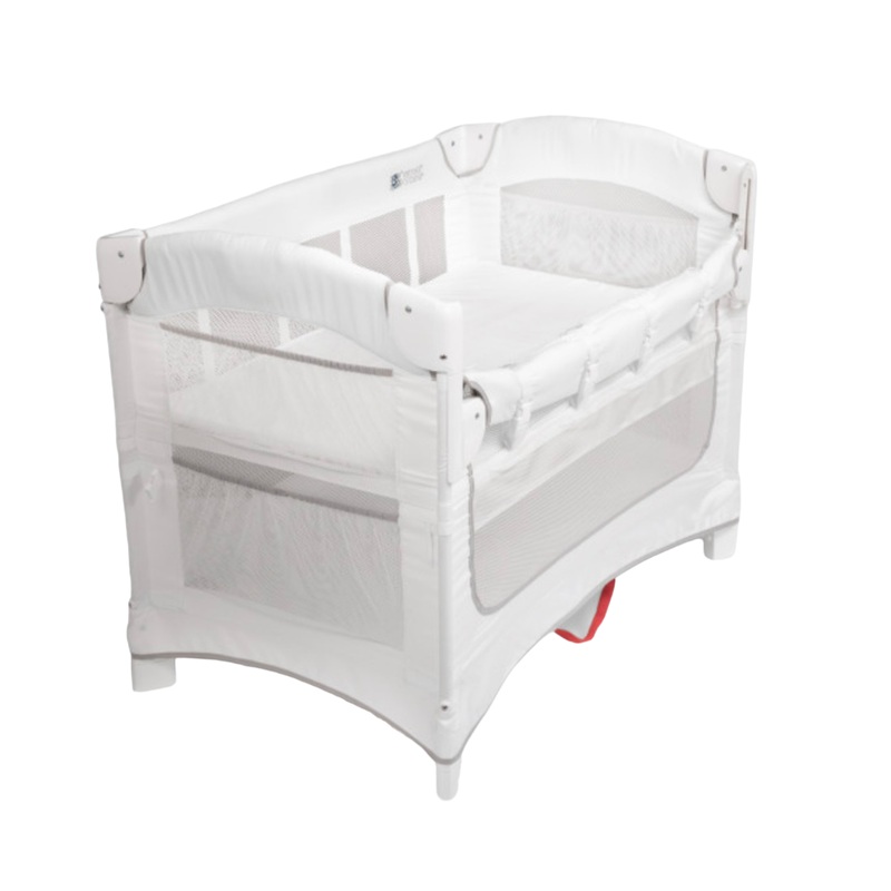 Great option for keeping baby sleeping safely by your bed. This one features 3 modes of use; a co-sleeper, bassinet and playard. Travel bag is included for easy storage or transport. Simple assembly and side pockets for storage makes this the perfect co-Sleeper.