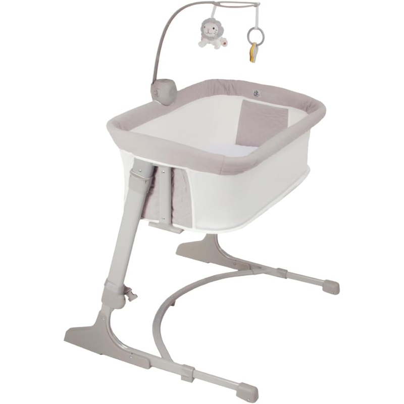 Keep your newborn close with this airy, adjustable and compact co-sleeper. The leg extension allows you to pick the perfect height for peeking in, one inch at a time, from 20 to 30. Adjustable feet help get the bassinet as close to the bed as possible and neatly tuck under the bed so you can avoid middle-of-the-night stumbles. And, when your little is awake and quiet, they can watch the soft toys bouncing gently overhead.