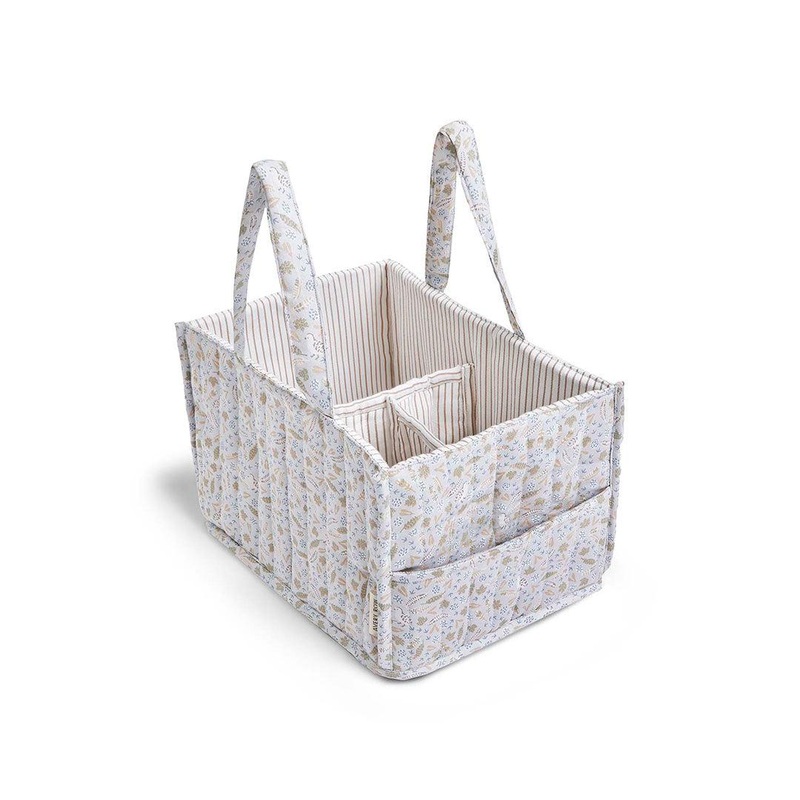 The Avery Row Nappy Caddy in Nature Trail is the perfect addition to any baby changing station. It has two outer pockets and three inner compartments perfect for all of your babys needs, including nappies, lotions, wipes and any other essentials you may need while changing. The lightweight fabric is soft to the touch and with its handles, you can take all of your baby’s essentials wherever you go.