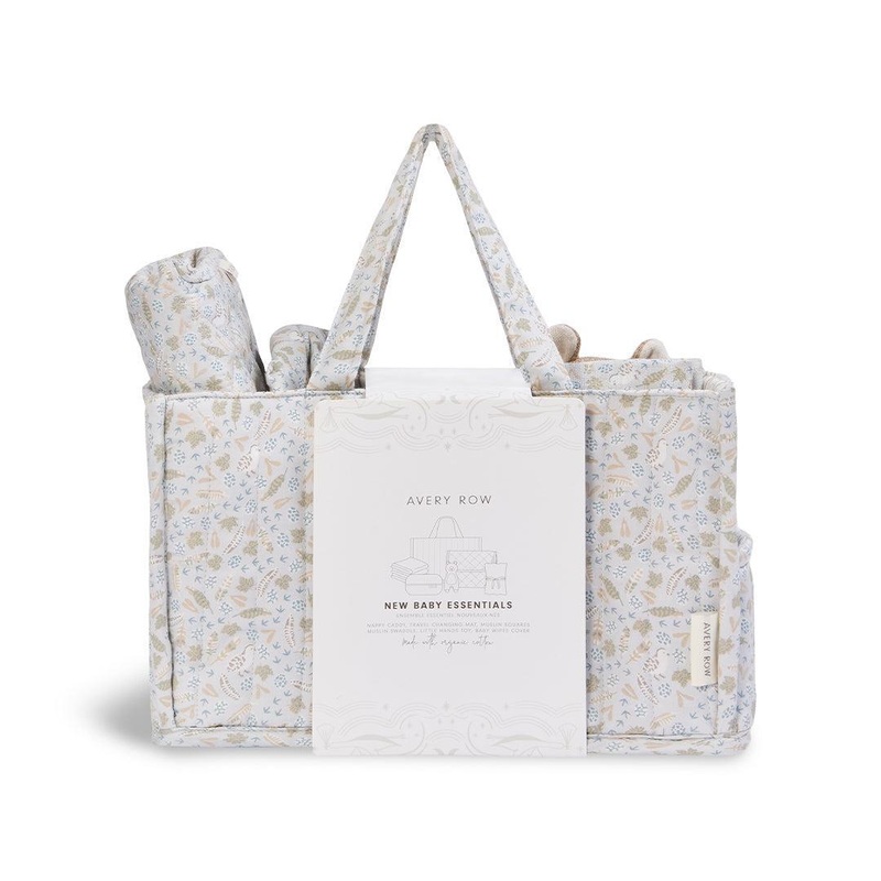 The Avery Row New Baby Essentials Gift Set has everything parents need for those precious first months. Beautifully packaged in a handy quilted nappy caddy, this thoughtful bundle includes everyday must-haves a travel changing mat, muslin squares, muslin s