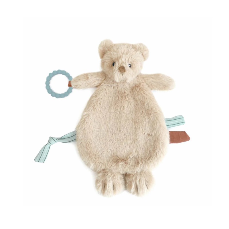 Part teether, part security blanketBaldwin Bear is here to make teething a lot easier! Mon Amis lovey plush and silicon teether toy helps baby navigate this rocky milestone like a champ. A textured, non-toxic silicon teether massages and soothes sore gums while crinkly arms keep a little one entertained with their gentle sound. Crafted of ultra-soft velour and fabric tabs, our bear lovey plush toy serves as the ideal snuggle buddy.
