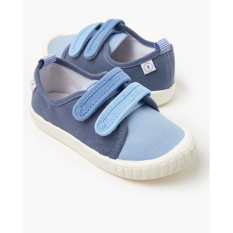 DETAILSOur Classic Ben style is one of our bestselling canvas kids shoes. The double strap style features a durable rubber sole and easy hook & eye straps for kids to get on and off themselves. Our Sea colourway is the perfect colourful addition to your li