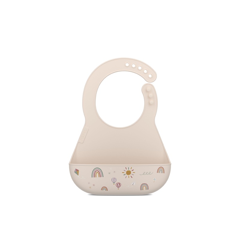 The Mepal Mio bib in the Sunshine & Rainbow design makes eating a lot easier and cleaner. The bib has a comfortable fit and an adjustable closure, so it always fits and grows with your child. The handy collection tray catches spilled food and drinks, makin