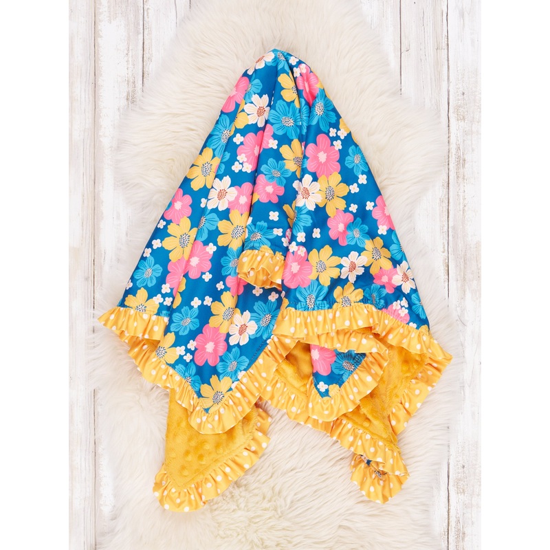 The perfect sibling set for your kiddos! This blanket features a darling wildflower detail, ruffles, & polka dot print. The smooth minky fabric is sure to make them say “WOW!” and give you hugs of appreciation. Get cozy!