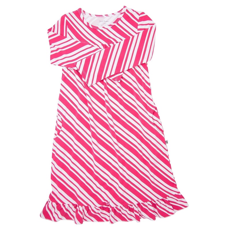 Ring in the magic with this beauty. Perfect for the girl who prefers a little more wiggle room and extra length. Tea length dress with long sleeves and a ruffle. Features double sided pockets. Extra-stretch neckline for added comfort. Flexible design for a