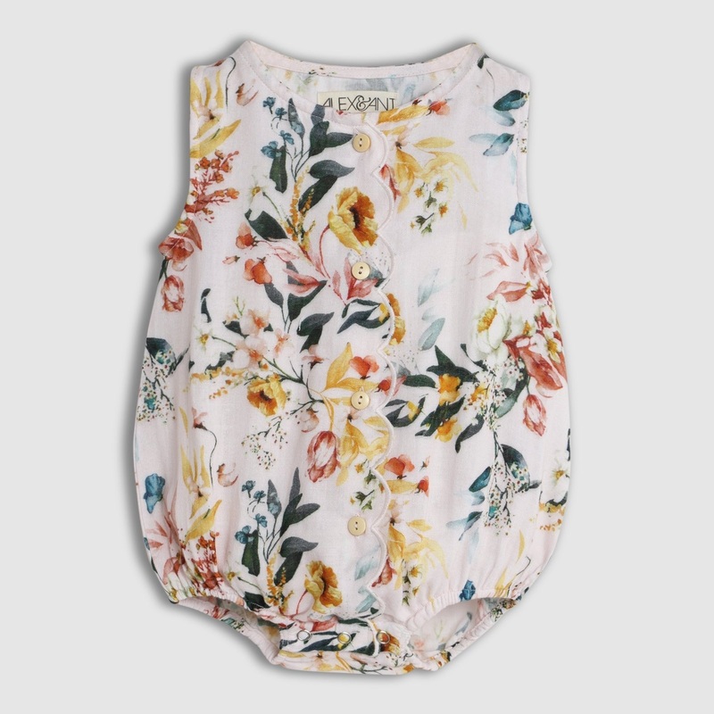 Summer blooms in style! Our Bonnie Playsuit in Floral is not onlystunning but also practical. The Scalloped edge detail and natural woodbuttons make this playsuit a summer dream. Sleeveless to keep yourbaby cool during warm days. It's the perfect choice fo