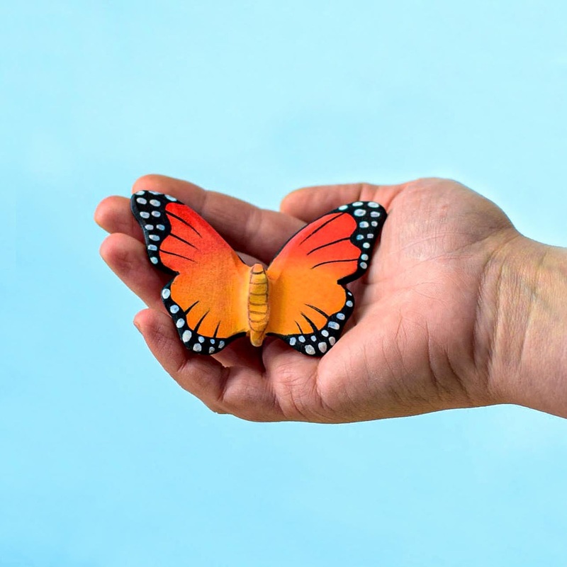 Hand-carved from sustainable wood and painted with non-toxic, water-based colors, this enchanting butterfly figurine is perfect for imaginative play and nature-themed storytelling.