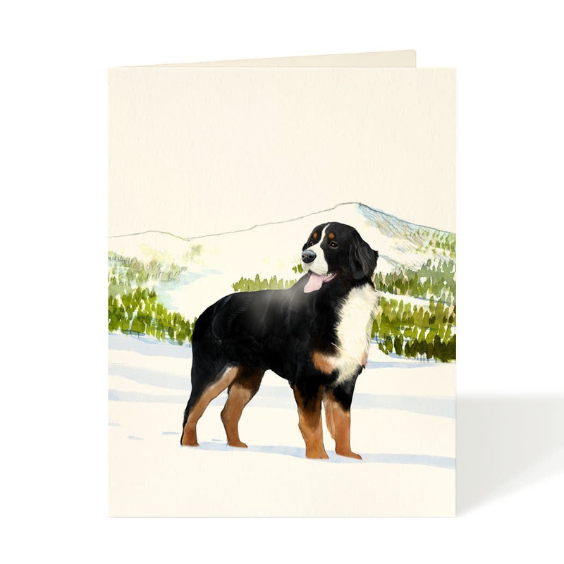 The Bernese Mountain Dog has a sweet affectionate nature and loves to please its owners. To know one is to love one! Printed on a beautiful eggshell stock, and featuring Felix's watercolor drawings and handwritten text. Plus a matching quality envelope.Fro