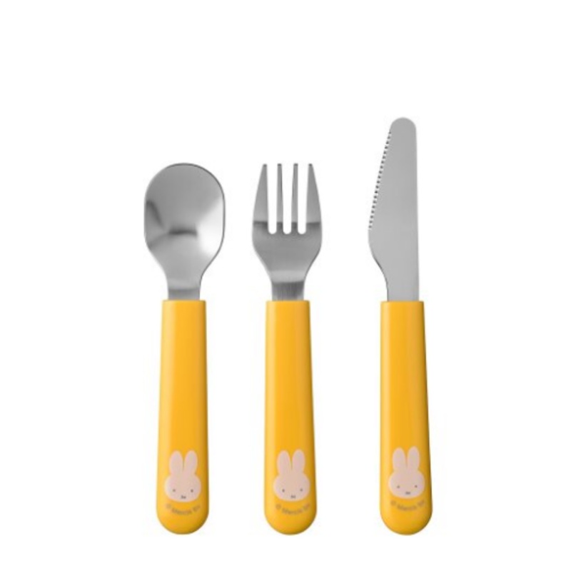 3-piece children's cutlery set Mepal Mio. This set includes a knife, fork, and spoon.Your little one loves to copy everything you do. Eating with a grownup knife and fork is no exception! This Mepal Mio cutlery set in the Miffy explore style is just the th