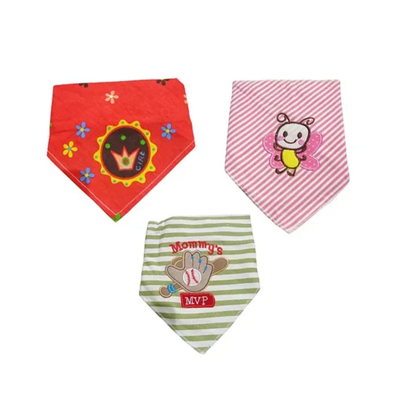 Chinmay Kids Reusable Baby Bibs Two Layered Cute Prints Edges Assorted Color Pack of 3 (Red-Pink-Green)