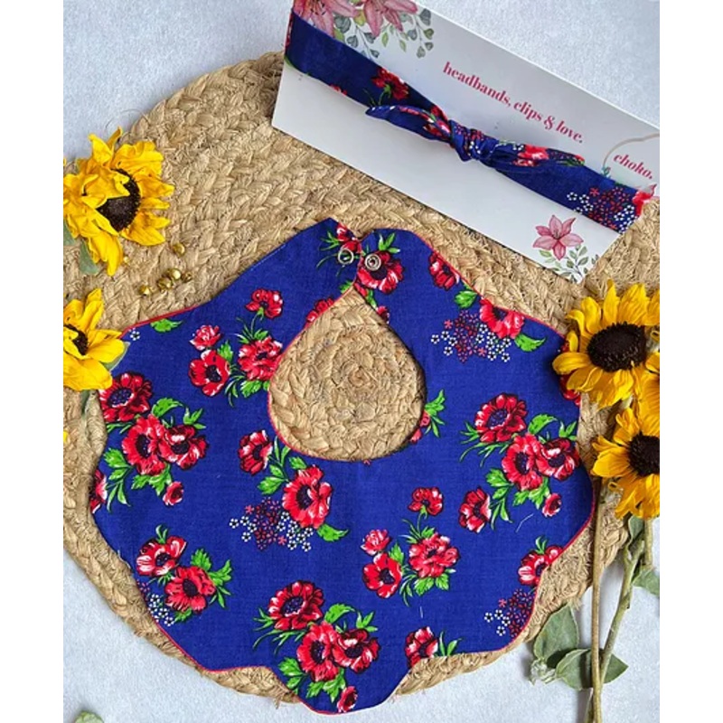 Choko Baby Bib with Snap Button Closure & Matching Headband Set – Blue