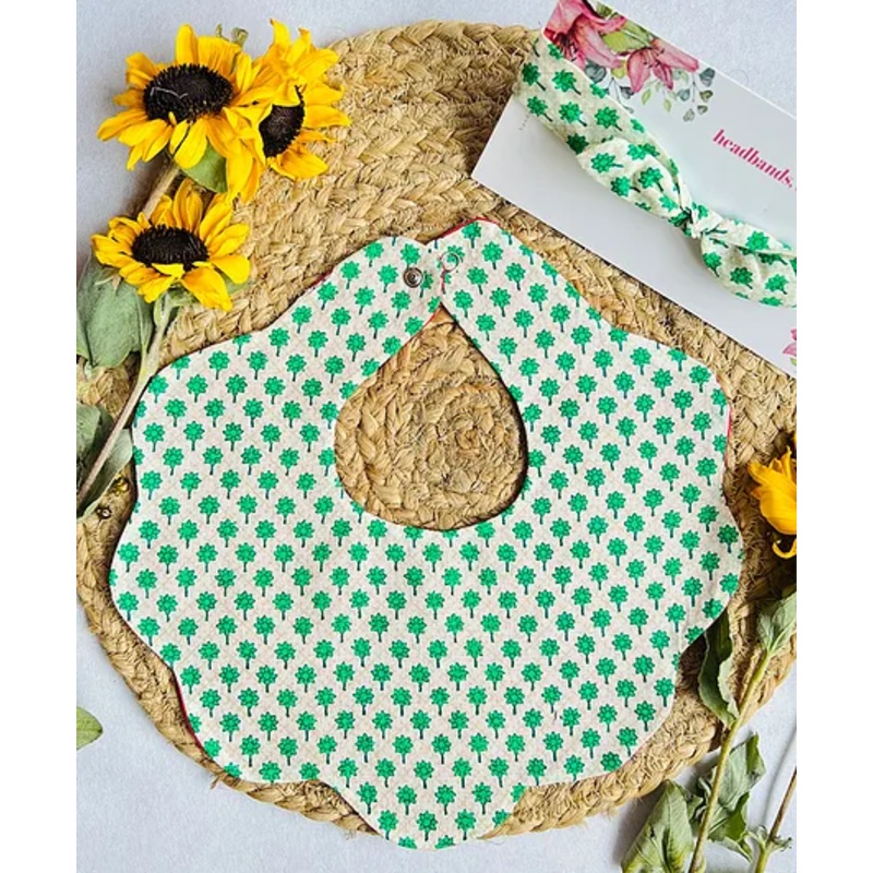 Choko Baby Bib with Snap Button Closure & Matching Headband Set – Green