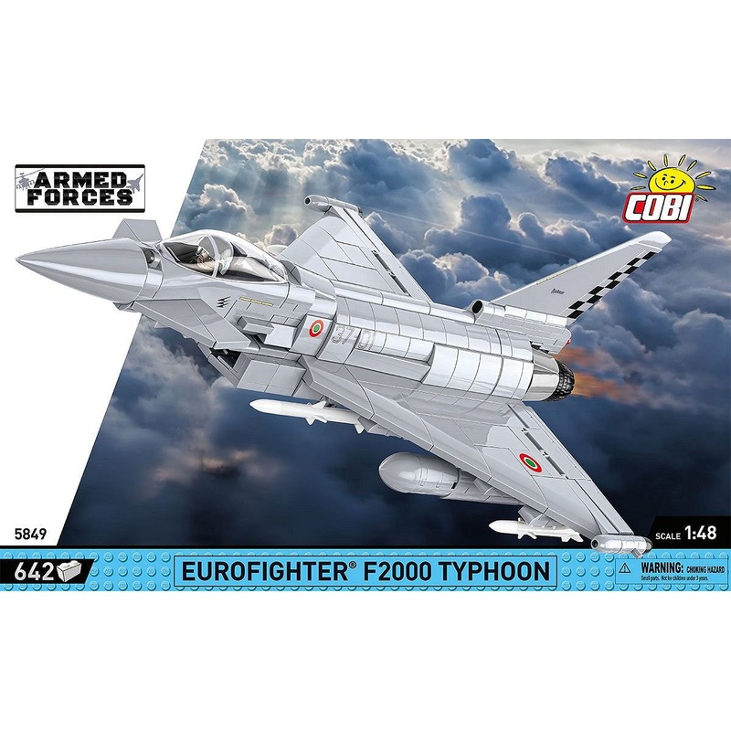 With 642 top-quality COBI construction blocks you can build the multi-purpose EUROFIGHTER F2000 TYPHOON fighter in the colors of the Italian Air Force. The set has been carefully designed in 1:48 scale and complements the Armed Forces collection. The model