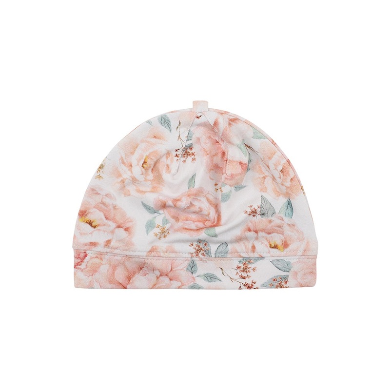This gorgeous rose print beanie with band is perfect for keeping your little one cosy and warm in winter. Perfect little outfit matched back with the Coco wrap onesie or the Coco zip onesie.-Hem band for secure placement-Australian owned and designed-Made