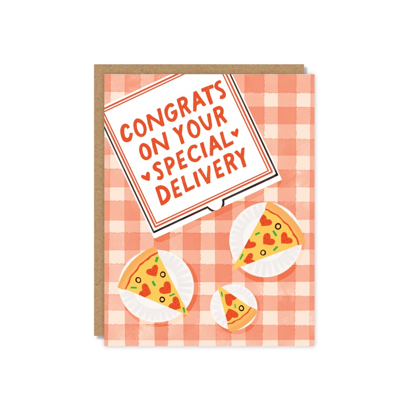 Size: A2 folded card, 4.25" x 5.5"Inside Greeting: BlankPaper: 130lb. matte paperEnvelope: 100% recycled kraft brown bagPackaging: Eco clear no flap sleeve