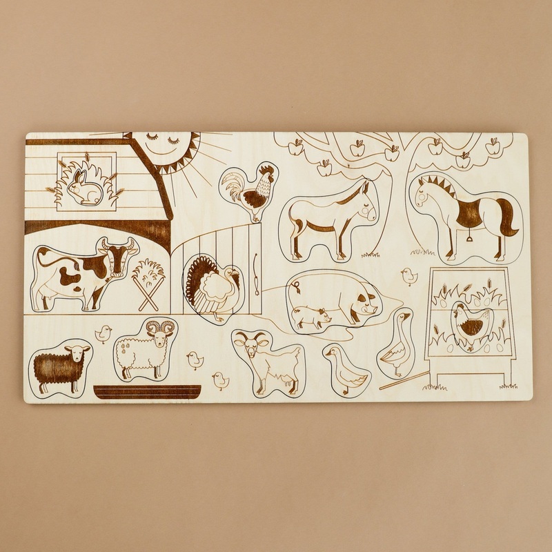 Explore the farm life with our Country Life Wooden Puzzle. Such a beautiful toy for little ones to help explore all the different animals that live on the farm and the fun little noises they make. Each puzzle piece can be taken out and played with separately for more open play!