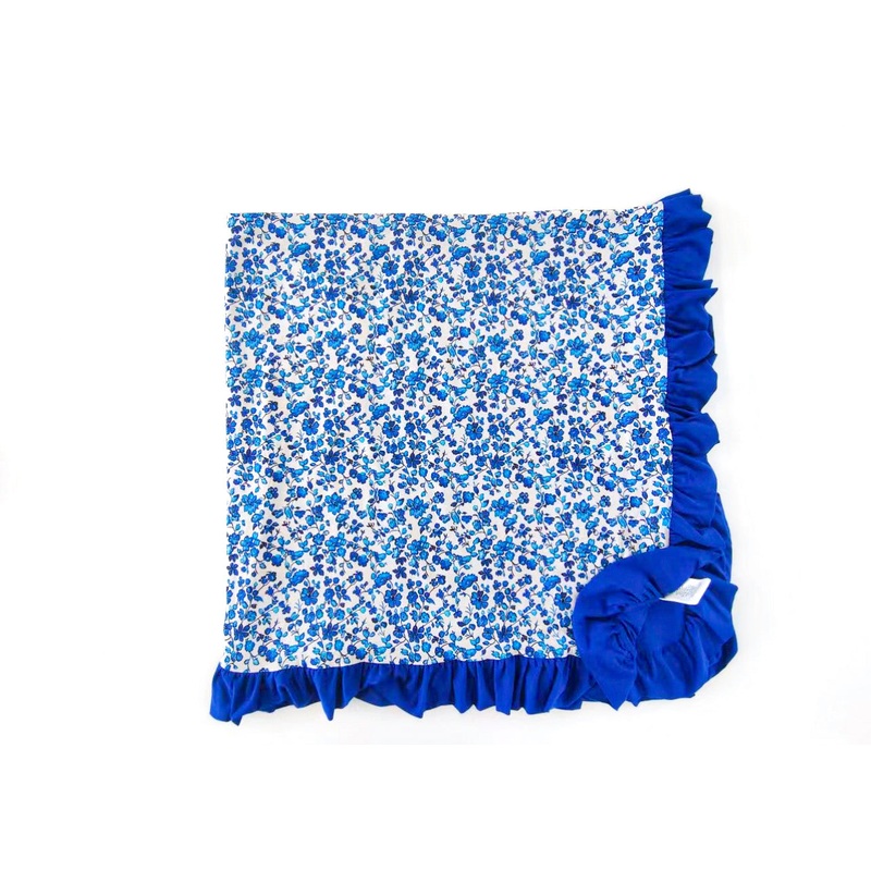 Snuggle up your little one in a Dainty Blue & Royal Double Layer Ruffle Blanket! This versatile blanket is perfect for both babies and toddlers, as it grows with them. Made of bamboo and spandex, it's super soft and perfect for year round use. The vintage