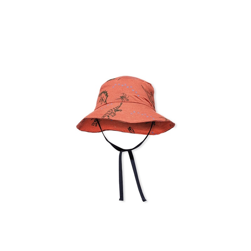 Milky Clothing Dinosaur Hat is the cutest way to top your boys Summer outfit! This bucket hat has a copper base colour with a cute dinosaur print all over. These summer hats have an under-chin tie to keep on their little heads. - Copper base colour with ju