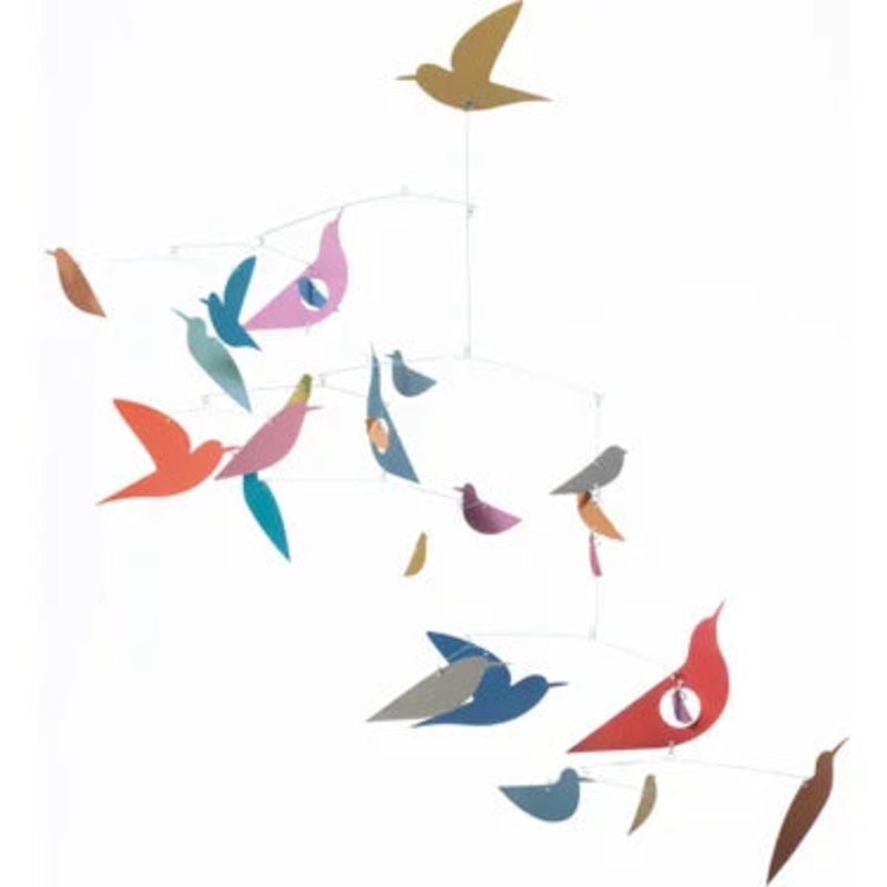 Make a dramatic design statement with this impressive work of room art. This 31-inch floating sculpture decorates a space often forgotten. Made of a special durable paper, it’s easily assembled, elegantly balanced and easily hung, it gives the feel of a flock of colorful birds flying Mobiles are proven to be soothing, relaxing, and tranquil as they softly move and float in space, they provide visual stimulation, acuity, and tracking. Every DJECO product is made from the highest quality materials and is completely non-toxic; meets and exceeds all US and European safety standards. A perfect gift for any child to add just the right artistic design accent to any room