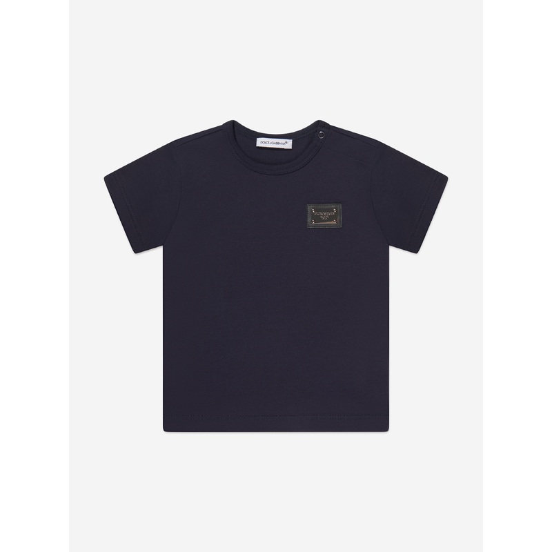 Dolce & Gabbana incorporate innovative materials with vintage abstracts into coexisting spaces. This baby boys logo t-shirt in navy captures the Italian label's preference for tradition and immaculate craftsmanship. Made in superior cotton jersey with a si