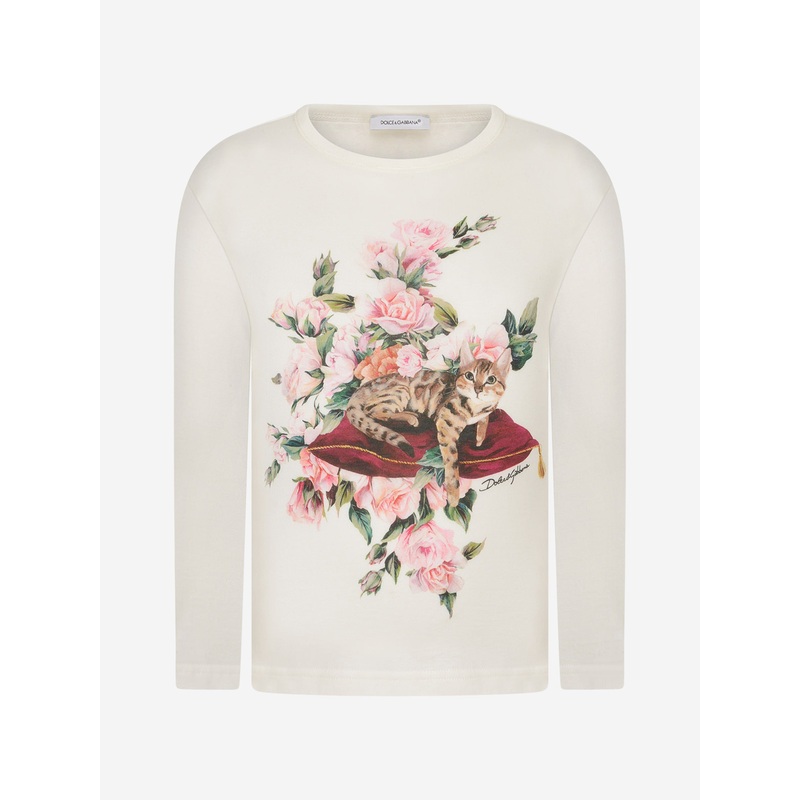 Introducing the exclusive Girls Roses & Cat Cotton Top in opulent Ivory by Dolce & Gabbana, a captivating blend of comfort and panache! Here’s what sets it apart:
