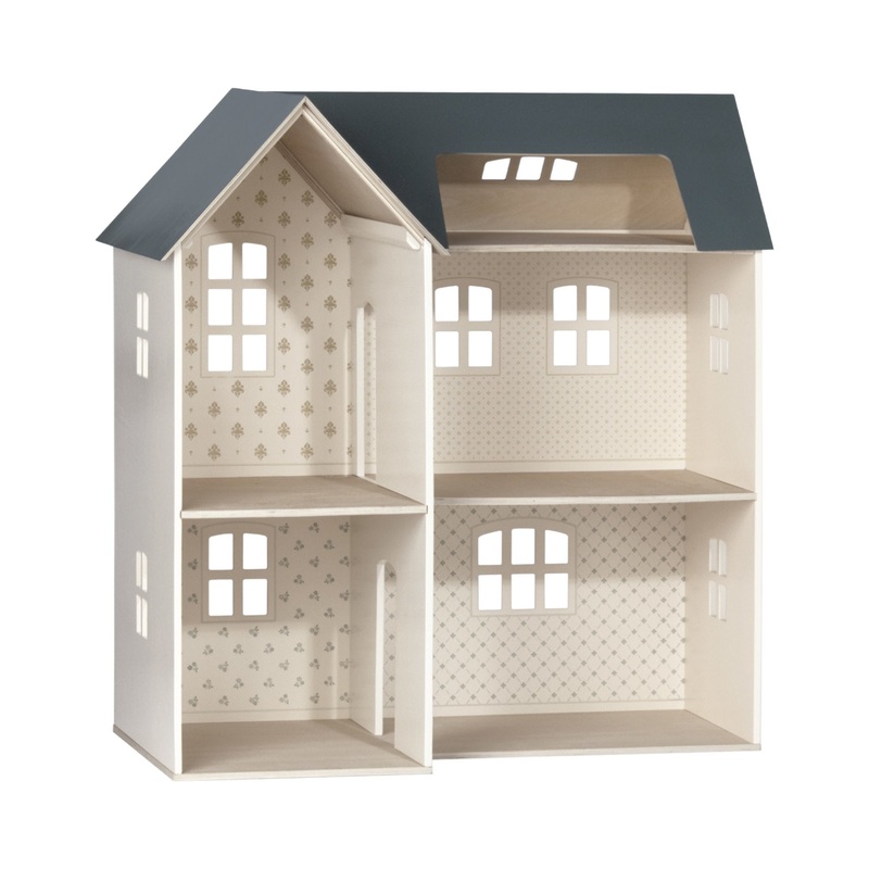 Maileg dollhouse with beautifully decorated walls. Products that fit into the house: Bunny/Rabbit size 1, 2, micro, my, Teddy family and furniture and accessories in size miniature.dollhouse extensions not includedSku: 11-3000-00Size: House of MiniatureHeight: 31.49″Width: 28.34″Recommended age: +3 yearWash: Surface washMaterial: Wood