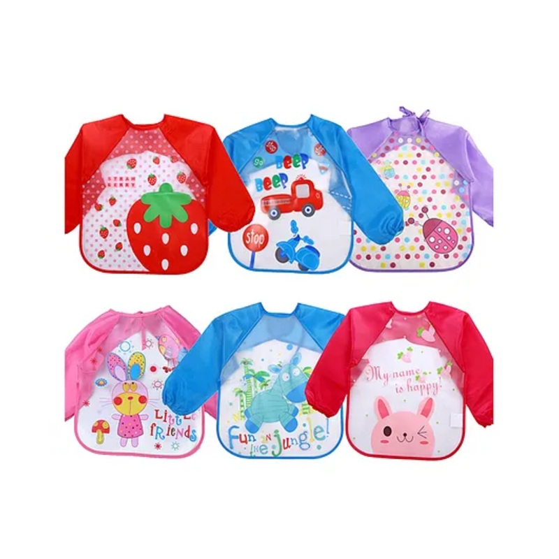 DOMENICO Full Sleeves Waterproof Printed Apron Wearable Bib Pack Of 6( Designs May Vary)