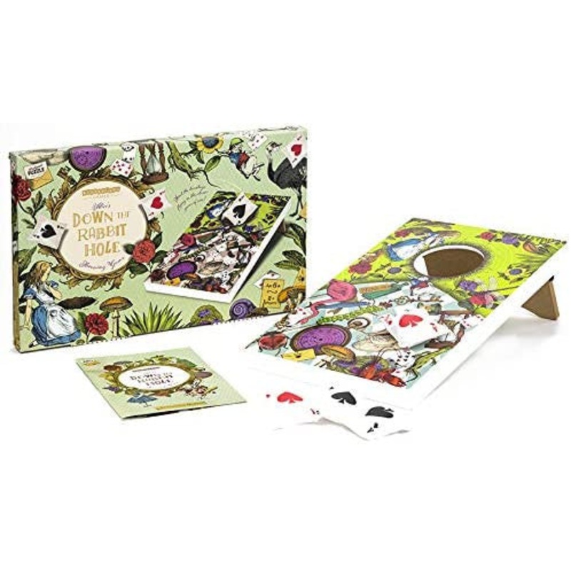 Alice in Wonderland Themed Corn Hole Game / Bean Bag Toss Game by Professor Puzzle. Send the beanbags tumbling down the rabbit hole in this beanbag target game / corn-hole game with a storybook twist! Indoor or outdoor game set for the whole family. Set co