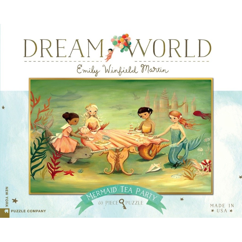 Join the elegant and graceful guests at the Mermaid Tea Party! Their table is set with tea and crumpets as the mermaids enjoy a dreamy get together under the sea!Dream World Illustration by Artist Emily Winfield Martin60 Piece Jigsaw PuzzleFinished Puzzle