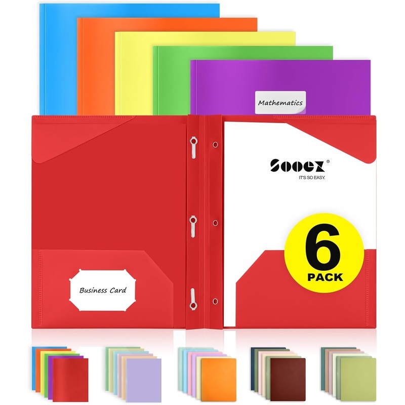 A Set of 6 Different Bright Colors: Plastic Folders consist of 6 colors: red, purple, blue,orange, green and yellow. Pronged Folders keep the paper organized. Different warmcolors will help spot your folders. The included labels help categorize and find fo