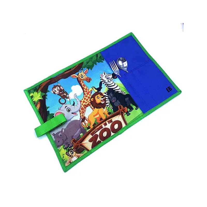 OCAL33215261314Echo Boomers Green Zoo Printed Stain Resistant Placemats Waterproof Tablemats for Kids Teenagers - Green & Blue