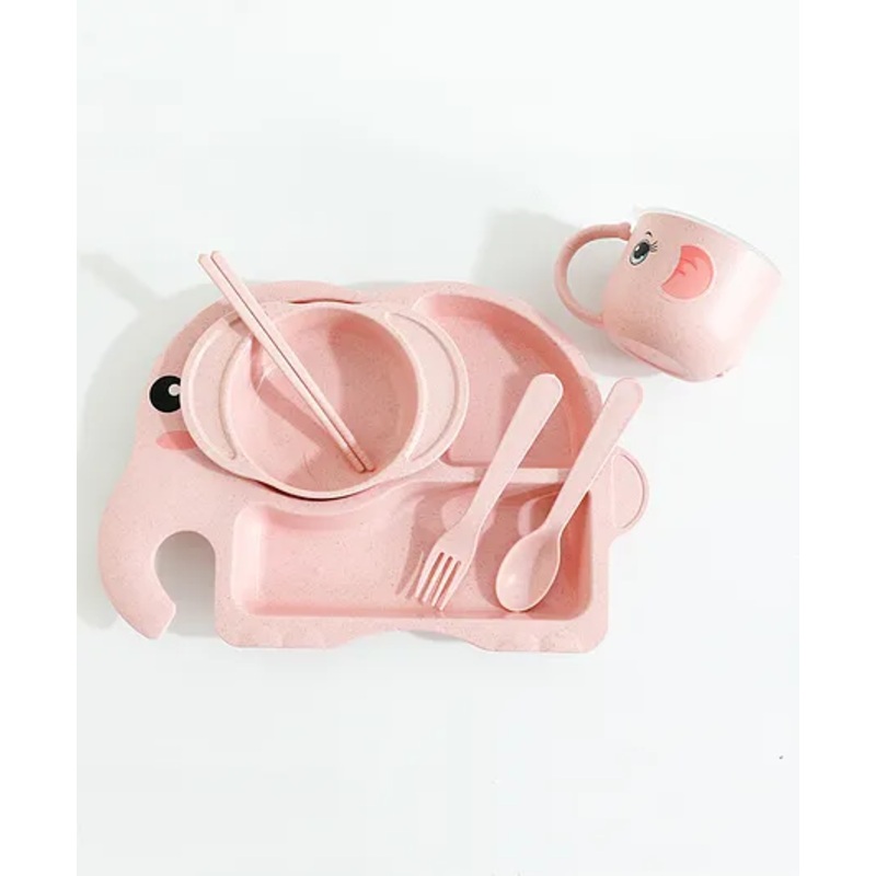 Elephant Shaped Feeding Set with Spoon Fork & Chopstick – Pink