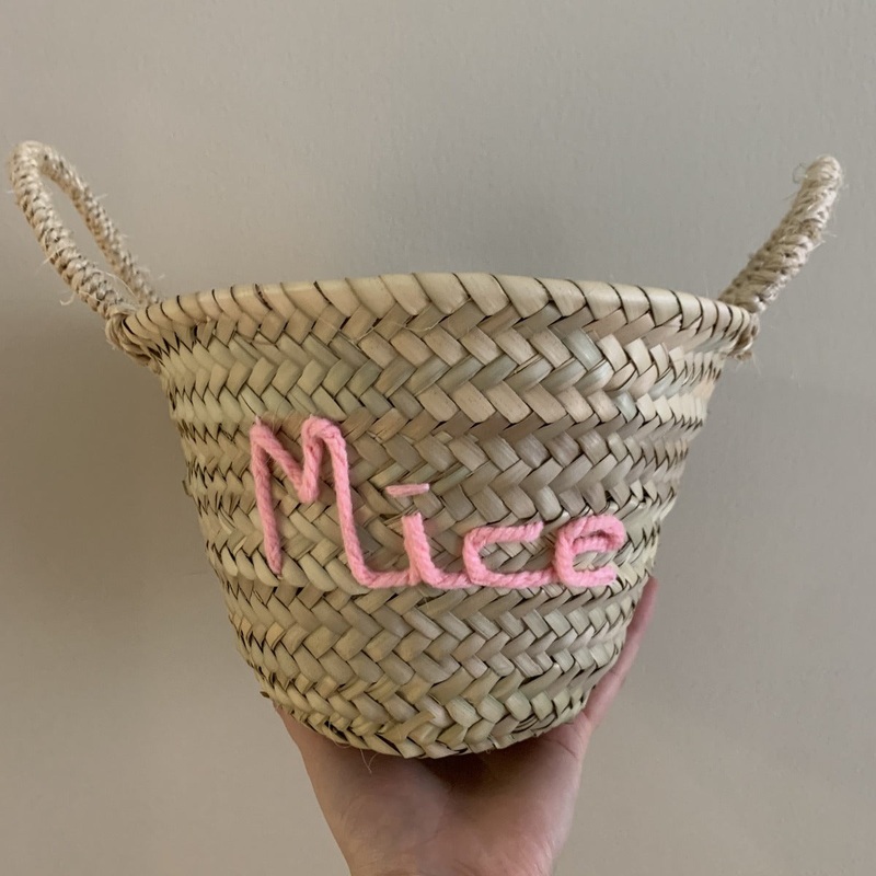 Please note, due to their handwoven nature, these baskets may have slight imperfections. Embroidery is in a ‘script’ font and so words reflect a handwritten style