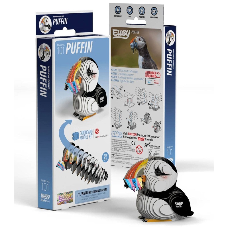 EUGY – a super-fun 3D puzzle that’s eco-friendly and can be assembled in 10 to 20 minutes! This collectable toy is great for STEM concepts and craftable fun. The Bowhead Whale is named for the strong arched curve of its mouth, which is shaped like a bow. Bowhead Whales can grow to over 65 feet long, but this little puzzle measures just over three inches long when completed. With the Bowhead Whale’s trademark white chin and a cute little heart-shaped spout puffing from its blowhole, this 3D puzzle is a perfect arts and craft activity to help pass some time and teach following instructions. Environmentally Friendly, Eco Friendly Ink, Non Toxic Glue, Biodegradable Materials.