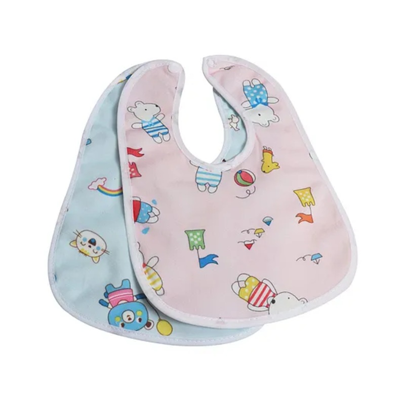 Fantasy India Baby Soft Feeding Bibs Apron Cute Multi Print with Tich Button Waterproof Pack of 2 (Assorted)