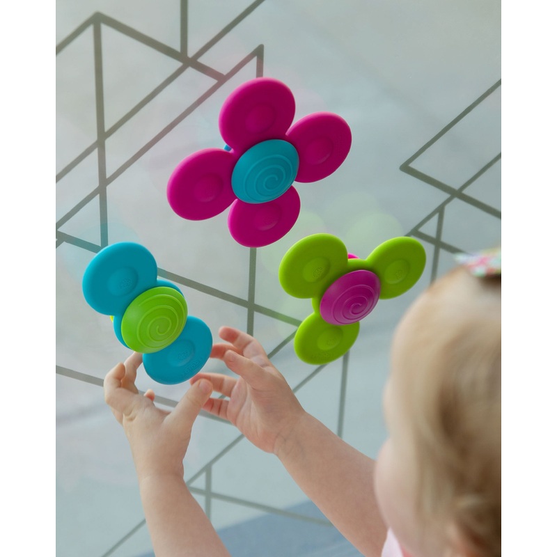 Send your little explorer twirling and whirling into a delightful sensory adventure! Each Whirly Squigz is made of 100% high-quality silicone that’s colorful, pleasant to touch, and safe for teething. Hold them, explore their unique contours, chomp on them and let them soothe sore gums… Then, stick them to any smooth, flat, non-porous surface – like a bathtub wall, a tabletop, or a window – give them a spin, and… WHOOSH! – Around and around they go, faster than the eye can see! Sensory exploration spins in a new direction with Whirly Squigz. Features: – Set of 3 colorful silicone spinners – Encourages fine motor skills, sensory exploration, cause-effect learning – A mesmerizing experience for the hands and eyes – Spinners made of 100% high quality, food-grade silicone – Perfect for teething – Each features a suction cup on one side, swirl-textured dome on the other – Sticks to any smooth, flat, non-porous surface – Spin wonderfully smooth and fast – Bearings made of high quality plastic – Won’t rust or degrade in the tub – Includes 3 Whirly Squigz – One with 2 petals, one with 3, and one with 4 – BPA-Free