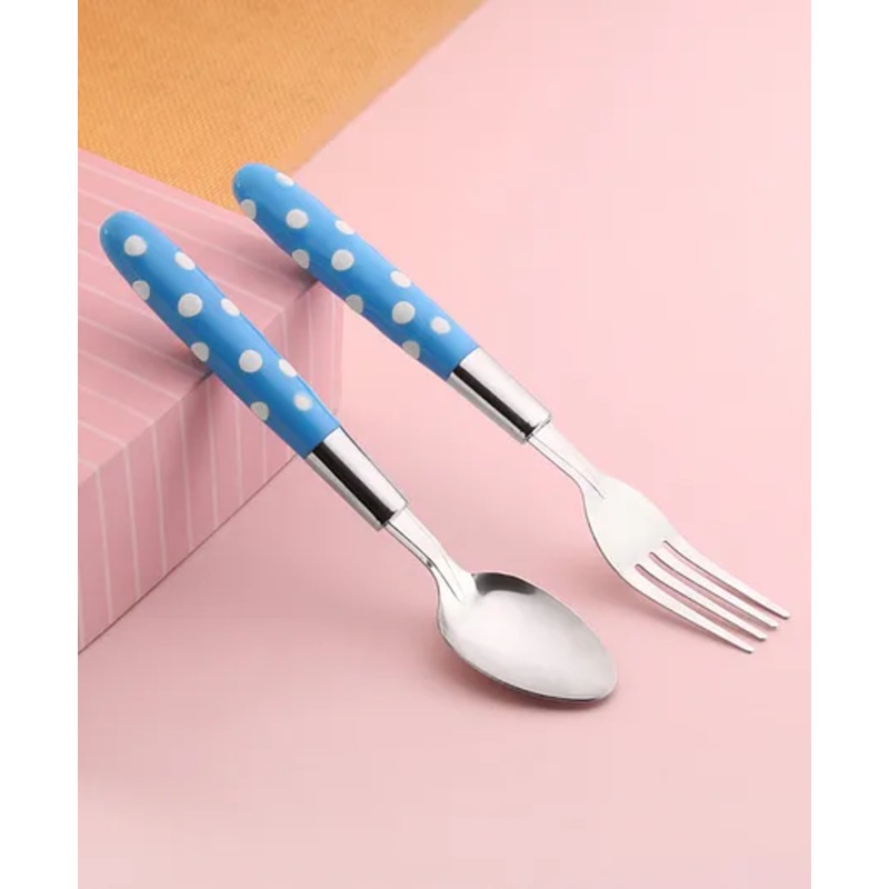 Pack of 2 Includes a fork and a spoon, providing a complete set for your child's mealtime needs.Stainless Steel Material Made from high-quality stainless steel, ensuring durability and safety.Ergonomic Design Uniquely designed, the broad handles are easy f