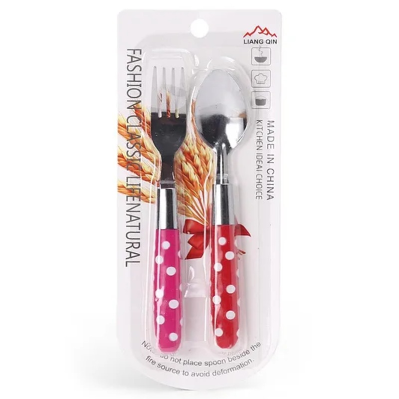Pack of 2 Includes a fork and a spoon, providing a complete set for your child's mealtime needs.Stainless Steel Material Made from high-quality stainless steel, ensuring durability and safety.Ergonomic Design Uniquely designed, the broad handles are easy f