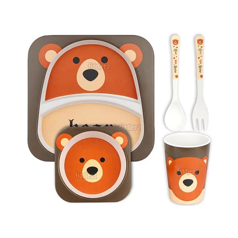 Fiddlerz Bamboo Tableware Baby Dinning Set Bear Print Pack of 5 – Multicolor