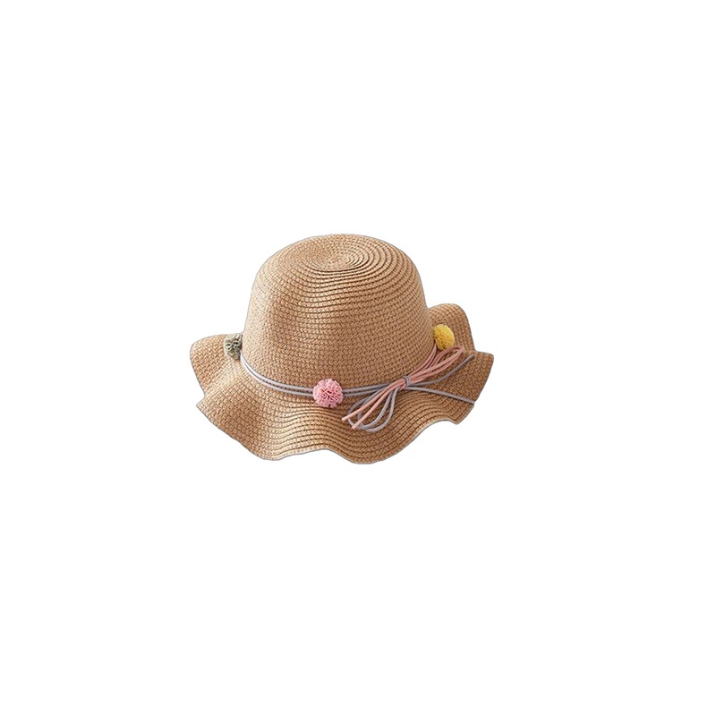 Flower pompom design enhances beachwear style. Coordinates well with various swimsuits. Cover-ups feature matching pom poms. Approximate circumference of 23 inches. Suitable for ages 6 years and up.