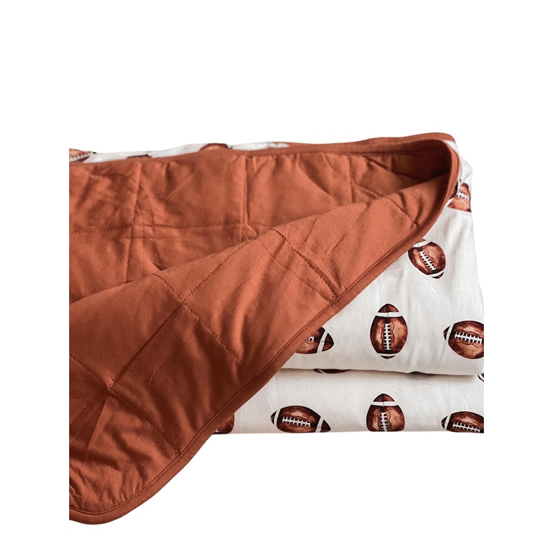 Designed for ultimate comfort and style. Made from 95% Bamboo Rayon and 5% Spandex on the outside. Lined with 100% Polyester for a silky-soft feel. Hypoallergenic and provides the right warmth for sleep or cuddles. Features a playful football print. Genero