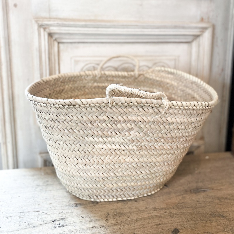 Handwoven from sustainable palm leaves Natural sisal cord handlesEthically handmade in MoroccoMade in Morocco17" long x 8.5" wide x 10" tall without handle, 12.5" with handledimensions are approximate and may vary due to the handmade nature of this item