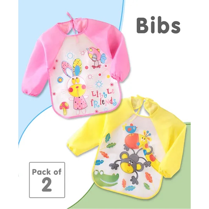 How to UseClose Neck ClosureSecure the bib around your child’s neck using the tag to ensure a snug and comfortable fit.Position the bib Make sure the bib is positioned at the bottom to catch any food and crumbs.Feed Your Child Enjoy a cleaner mealtime as the bib catches spills and crumbs, keeping your child’s clothes clean.How to CleanWipe Clean For quick clean-ups, simply wipe the bib with a damp cloth.Hand Wash Wash the bib with warm soapy water, rinse thoroughly, and let it air dry.Washing Machine Safe For a thorough clean, place the bib on the top rack of the dishwasher.SpecificationsType – Baby BibAge – 9 Month to 3 yearsMaterial – EVADimension – L 41 x B 34 cmLength of Belt – 34 cmlength of sleeves – 41 cmProduct DescriptionThe Fab n Funky waterproof bib in yellow & pink pack of 2 is a delightful and practical accessory for mealtime. Featuring an adorable smiley face design, this bib is made from high-quality, food-grade EVA Material, ensuring both safety and durability. It is designed to make feeding times less messy and more enjoyable for your little one.Items Included In Package2 Bibs